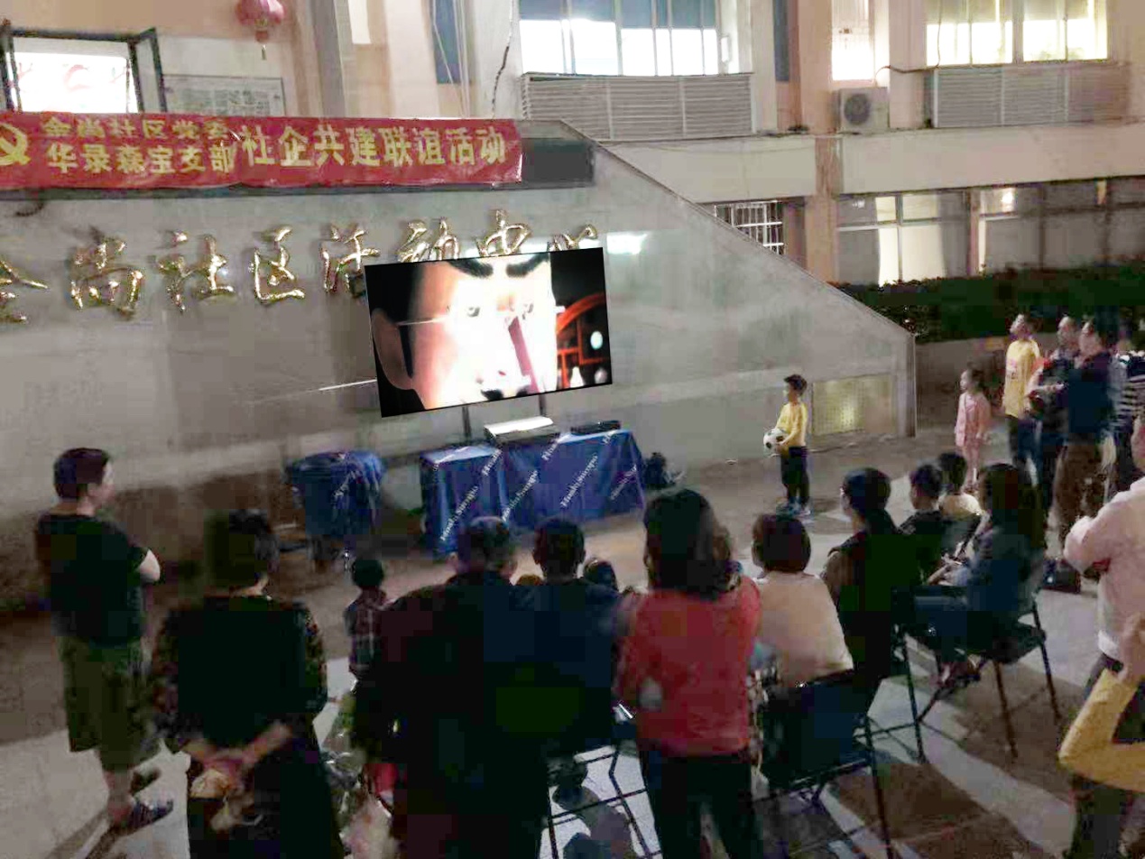 會(huì)后,華錄森寶黨支部將華錄激光影院成套產(chǎn)品在社區(qū)活動(dòng)中心廣場(chǎng)進(jìn)行開機(jī)展示,將產(chǎn)品深入到群眾生活,讓社區(qū)居民親身感受華錄創(chuàng)新科技產(chǎn)品的視聽震撼。華錄激光電視百寸大屏的觀影新體驗(yàn)、高清的畫質(zhì)和豐富的色彩呈現(xiàn)頓時(shí)吸引了廣大居民,大家紛紛主動(dòng)向公司工作人員了解產(chǎn)品信息。此次社區(qū)產(chǎn)品展示開拓了新的營(yíng)銷推廣方式,實(shí)現(xiàn)了黨建與公司經(jīng)營(yíng)工作的結(jié)合,充分展示企業(yè)黨組織的帶頭和模范作用,促進(jìn)黨建與經(jīng)營(yíng)共發(fā)展的新格局。