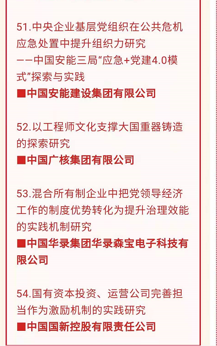 中央企業(yè)黨建思想政治工作研究會,是全國國有企業(yè)系統(tǒng)思想政治文化研究的權(quán)威機(jī)構(gòu),負(fù)責(zé)每年對全國國有企業(yè)思想政治文化研究成果進(jìn)行評選和表彰。2020年,共評選出優(yōu)秀研究成果一等獎(jiǎng)32篇,二等獎(jiǎng)優(yōu)秀成果43篇,三等獎(jiǎng)優(yōu)秀成果54篇。