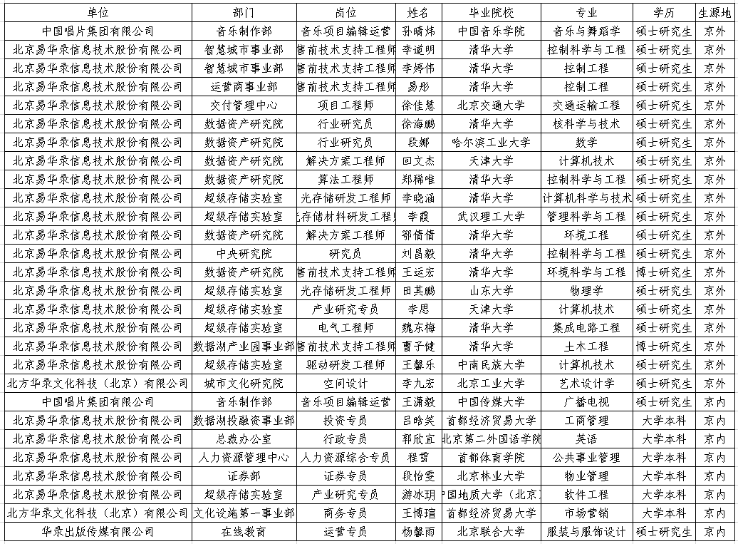 為確保中國華錄集團有限公司北京科技分公司在京單位高校畢業(yè)生接收工作規(guī)范有序開展,現(xiàn)將在京單位提交的高校畢業(yè)生接收情況發(fā)布公示,接受社會監(jiān)督。公示期2021年10月11日-2021年10月17日。